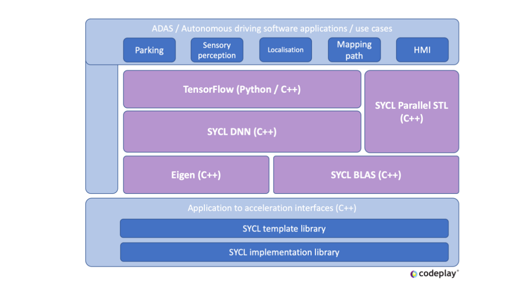 Codeplay are experts in accelerated software using SYCL on most hardware platforms. It understands what is required to create acceleration libraries that enable heterogonous platforms to operate AI and ADAS applications.