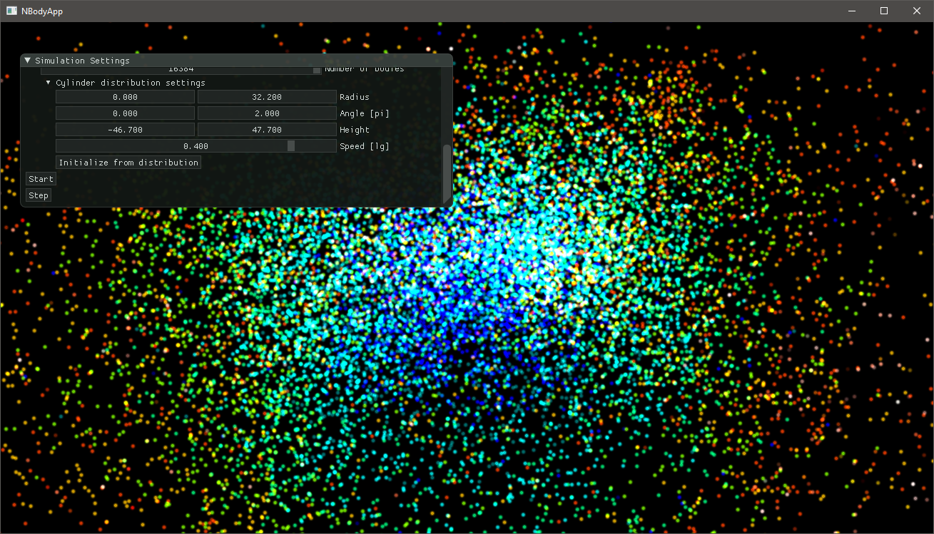 To demonstrate the capabilities of the Tracy integration with ComputeCpp, we selected the NBody simulation from the ComputeCpp SDK (see the screenshot below). This application is a good example because it launches many kernels every second and doesn't finish until it is interrupted.