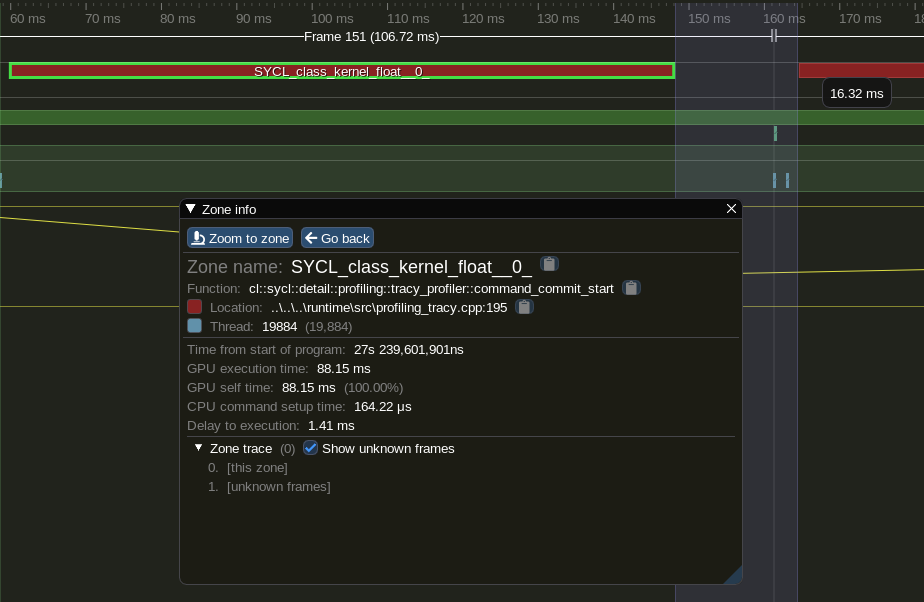Profiling is an important part of software development and Codeplay are constantly working to improve out-of-the-box profiling support in ComputeCpp. By embedding Tracy in ComputeCpp you get a performant profiler that has many interesting features and can help you optimize your application to meet your targets.